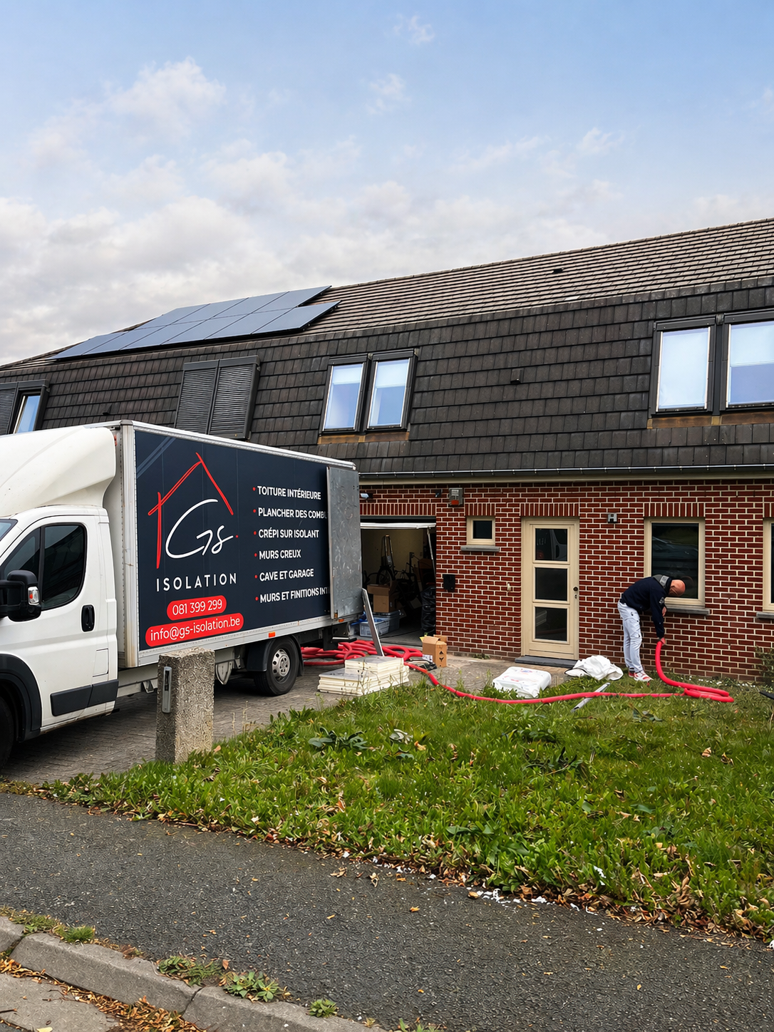 Sur ce chantier situé à Enghien, nous avons réalisé une isolation complète du plancher des combles ainsi que des murs creux.